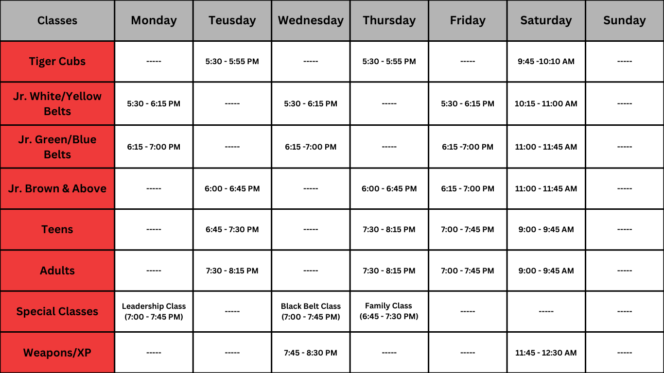 Current Class Schedule (As of March 2026)