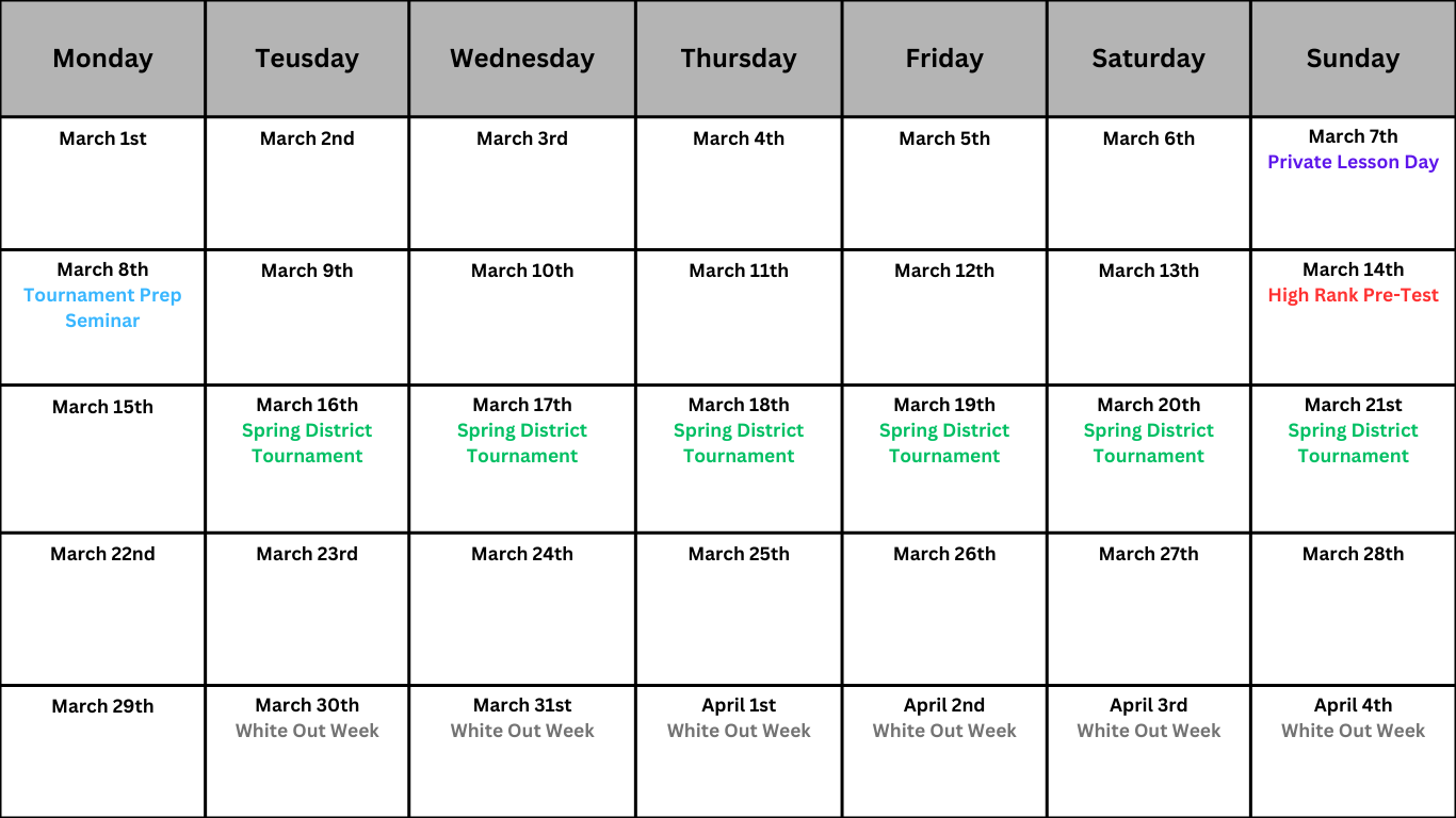 Current Monthly Calendar – March 2026